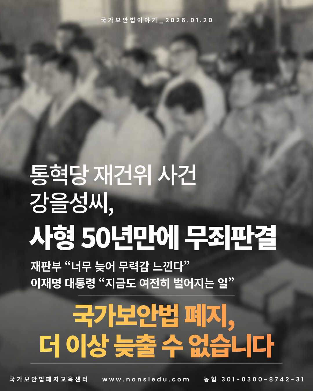 [오늘의 국가보안법 이야기 : 통혁당 재건위 사건 강을성씨, 사형 50년 만인 2026. 1. 19. 재심 무죄 판결]